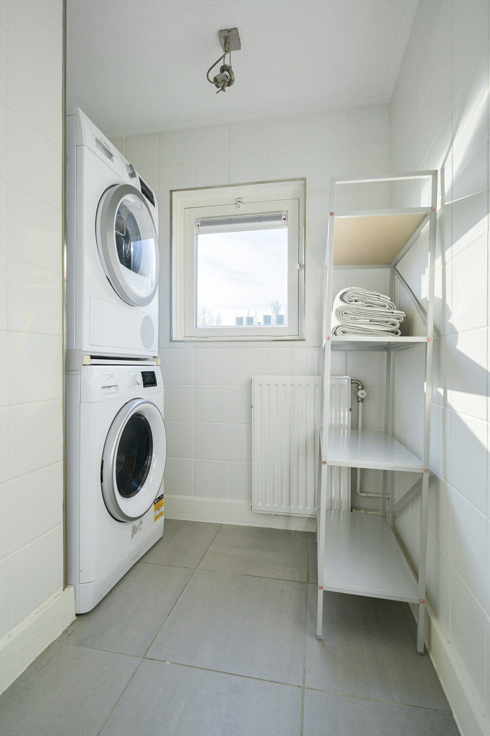 Wasruimte (ca. 1.50 x 1.15/1.90 m), gelegen aan de voorzijde met aansluitpunten ten behoeve van de wasapparatuur.