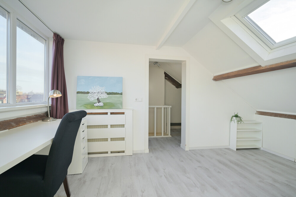 Overloop met laminaatvloer, werkkast en afsluitbare trapopgang naar de zolderverdieping. Vanuit de overloop toegang tot 2 slaapkamers, badkamer en wasruimte.Slaapkamer i