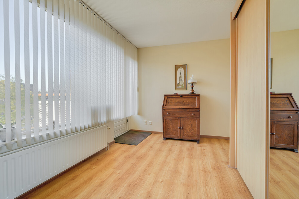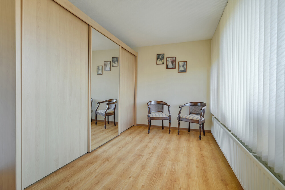 Slaapkamer I (ca. 2,85 x 4,40 m) gesitueerd aan de achterzijde voorzien van een laminaatvloer, een grote kledingkast en een stapdeur naar het balkon.Slaapkamer ii
