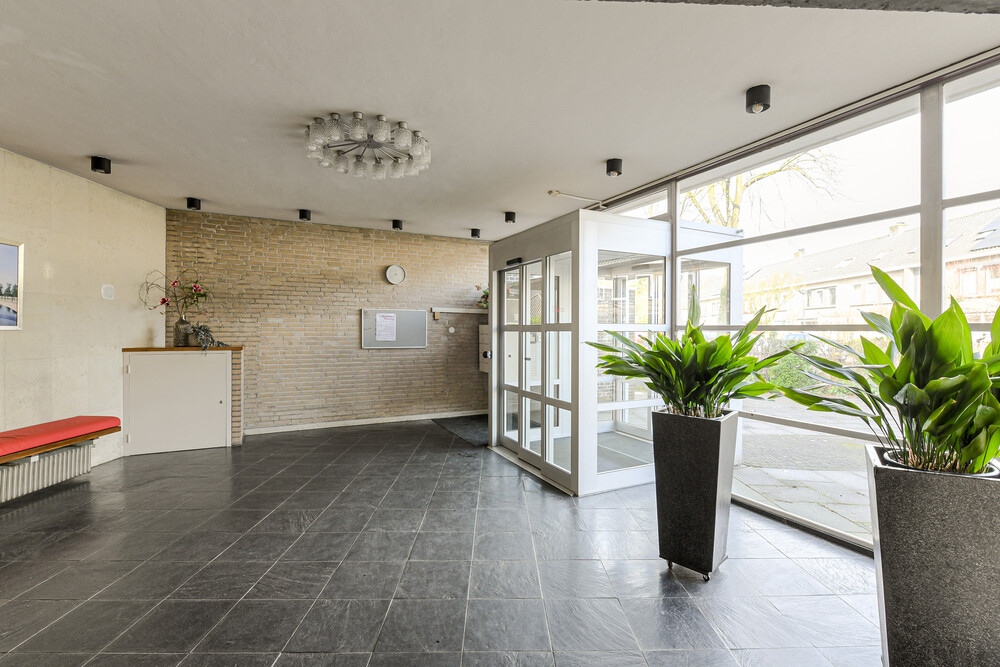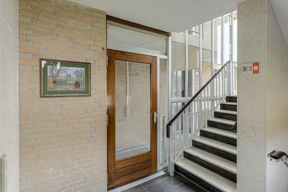 Representatieve centrale entree met brievenbussen, bellentableau en video-intercom. Afgesloten hal met toegang tot lift, trappenhuis en de bergingen.Berging