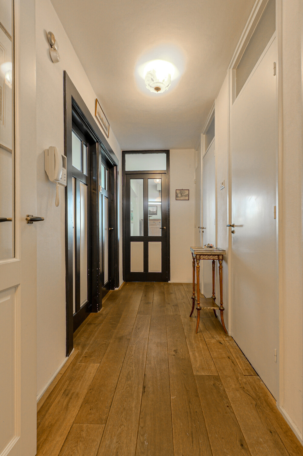 Via de galerij bereikt u de voordeur van het appartement. De indeling is praktisch en ruim opgezet:Entree