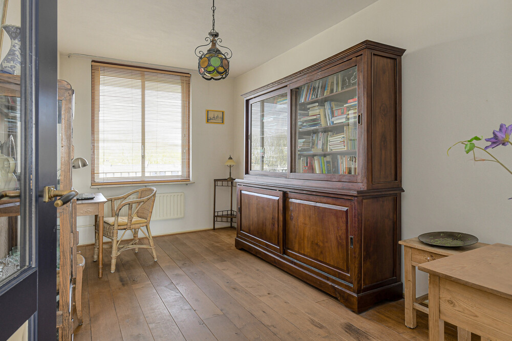 Tweede slaapkamer bereikbaar vanuit de hal en eveneens voorzien van een houten vloer.Badkamer