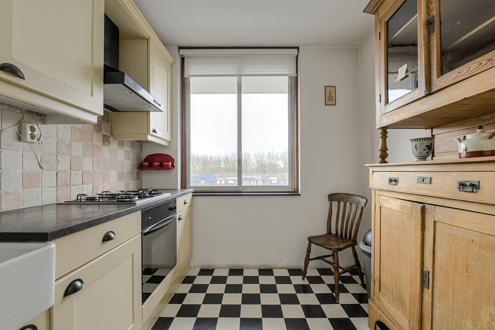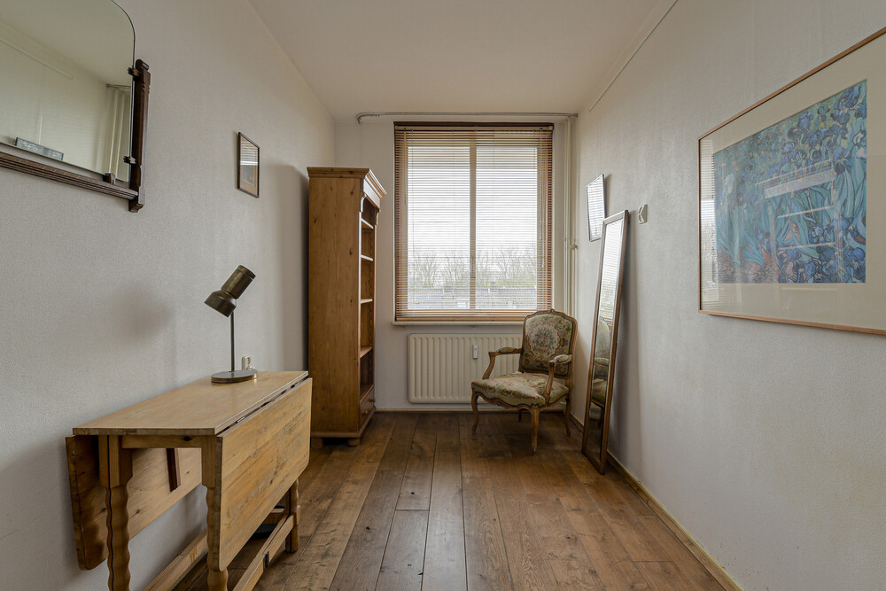Het appartement biedt volop ruimte en licht, en vormt een uitstekende basis om geheel naar eigen smaak te moderniseren.