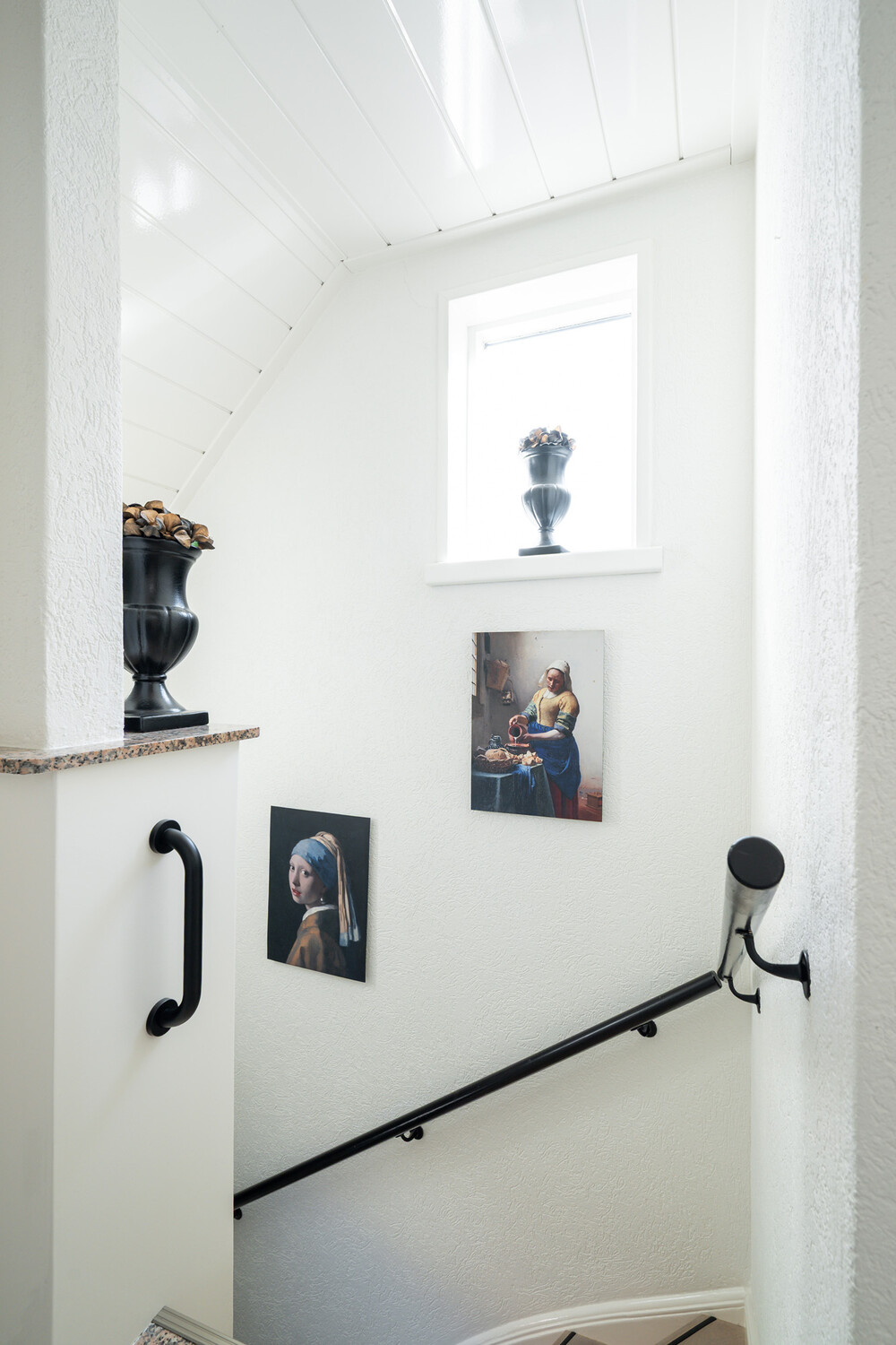 Overloop met trapopgang naar de zolder en toegang tot de slaapkamers en badkamer.Slaapkamer i