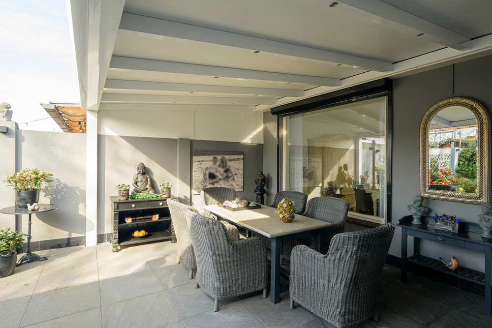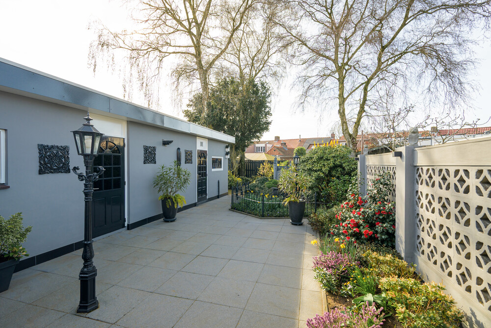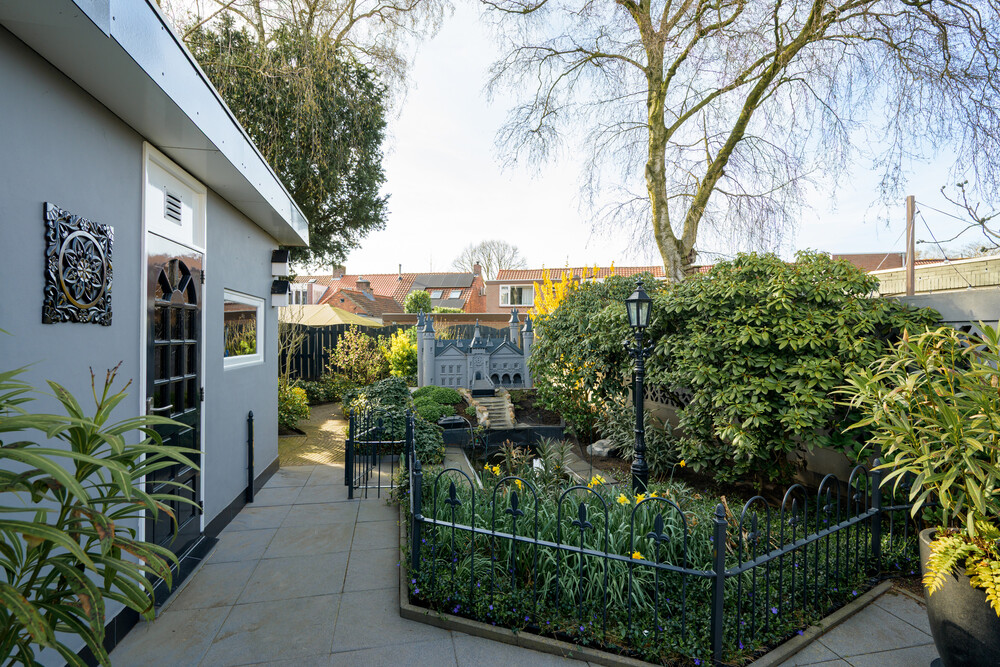 De royale achtertuin is gunstig gelegen op het westen, waardoor u optimaal kunt genieten van de middag- en avondzon. De tuin is verzorgd aangelegd en beschikt over een terras, groene borders, een vijver en een overkapping met inbouwspots.Daarnaast heeft u vanuit de tuin toegang tot twee bergingen en de garage.