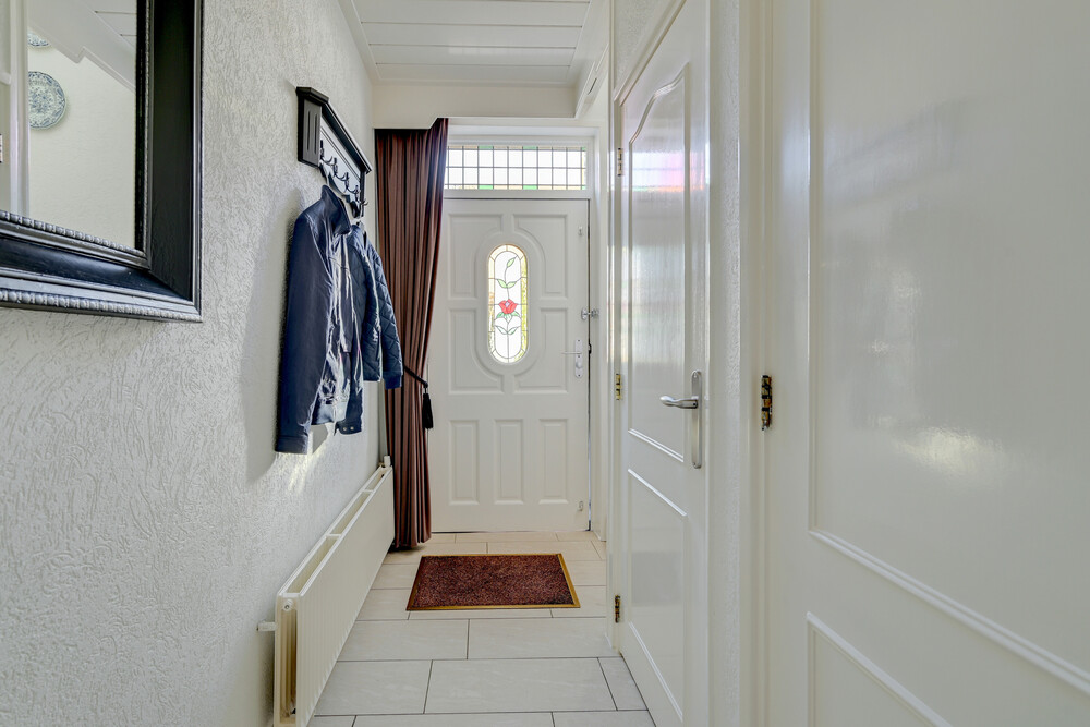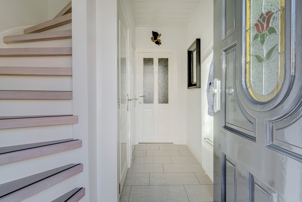 U betreedt de woning via de hal met meterkast, trapopgang naar de eerste verdieping en toegang tot de woonkamer en het toilet.Toilet