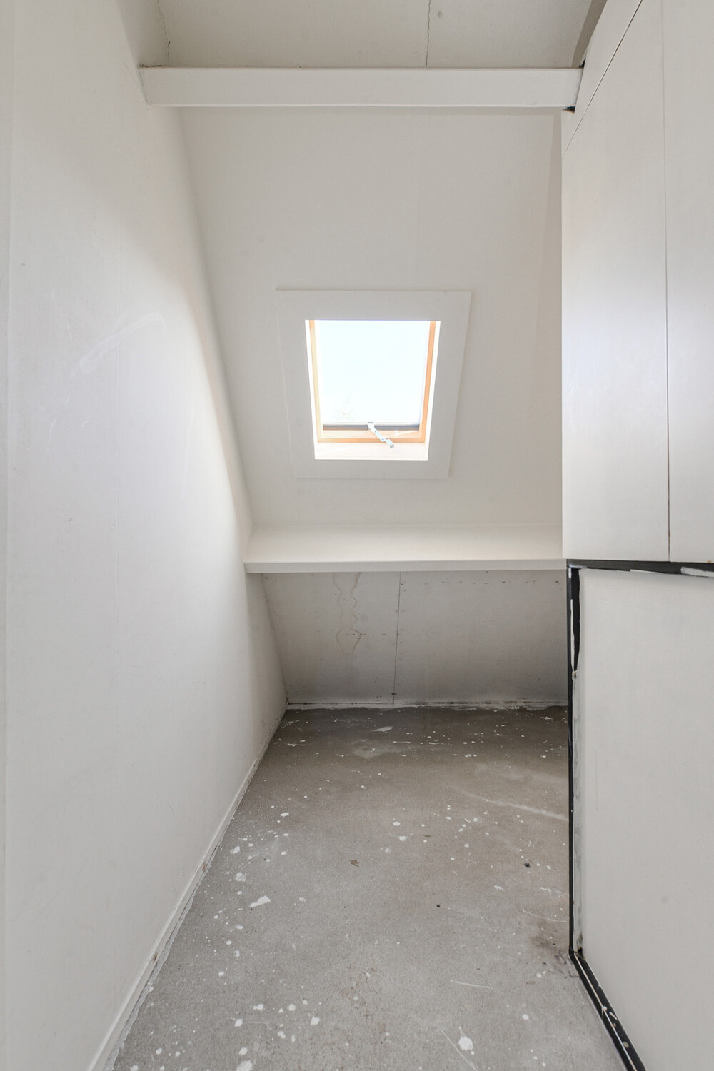 Via een vaste trap te bereiken voorzolder met dakraam, schuifwandkast en aansluiting t.b.v. de wasapparatuur.Slaapkamer vi
