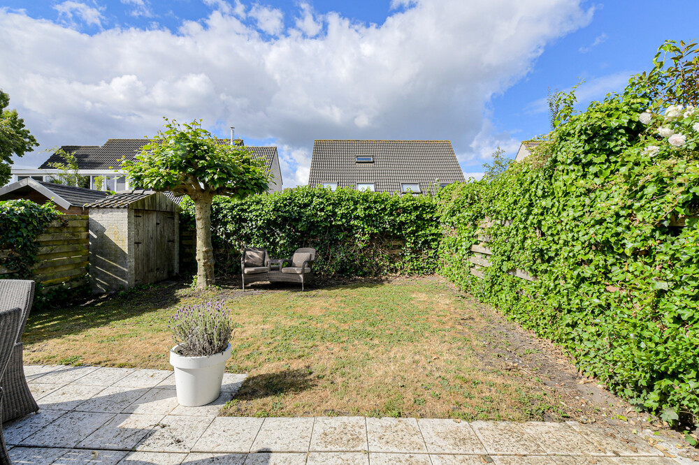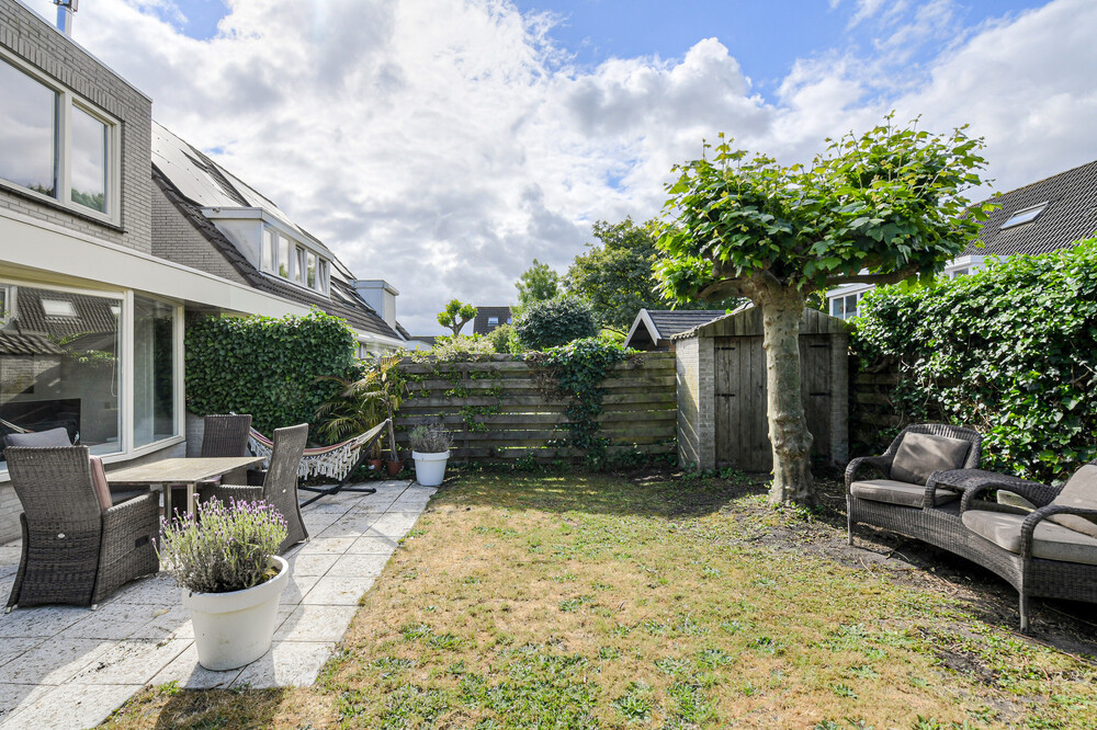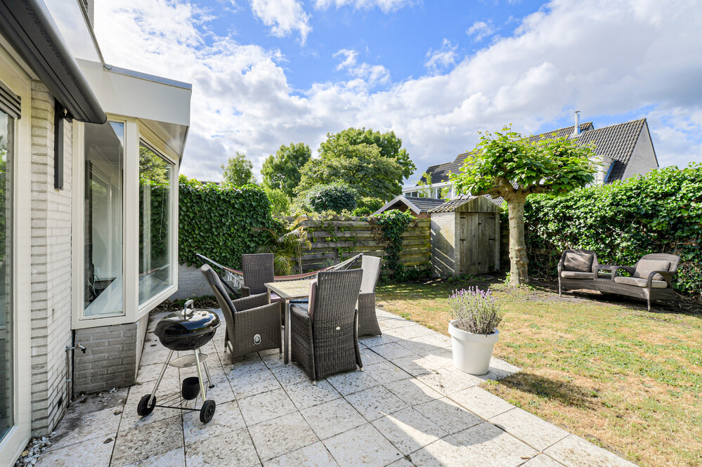 De achtertuin is ca 10.00 m diep en ca. 8.50 m breed en is gesitueerd op het zuidwesten. Deze tuin is aangelegd met een terras, een gazon en borders. Het terras is voorzien van een elektrisch bedienbaar zonnescherm.