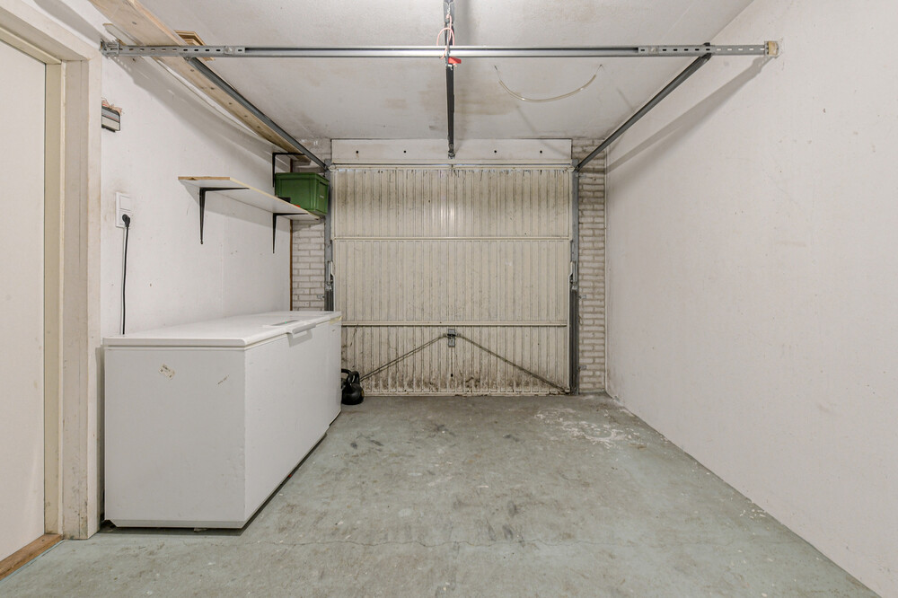Via de hal toegang tot de inpandige garage voorzien van elektra en ook toegankelijk via stalen kanteldeur vanaf de oprit.