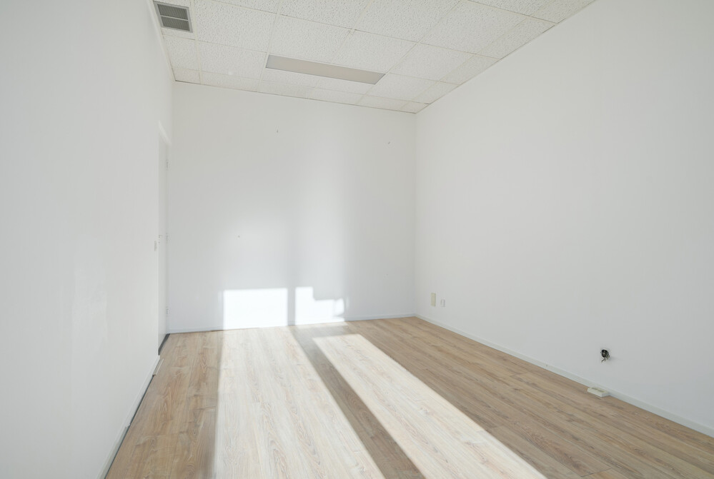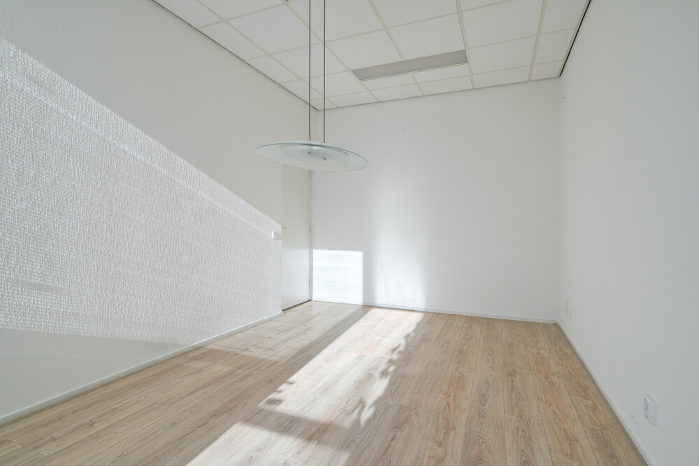 Alle kamers op de begane grond zijn afgewerkt met een laminaatvloer en een systeemplafond (met uitzondering van het toilet).
