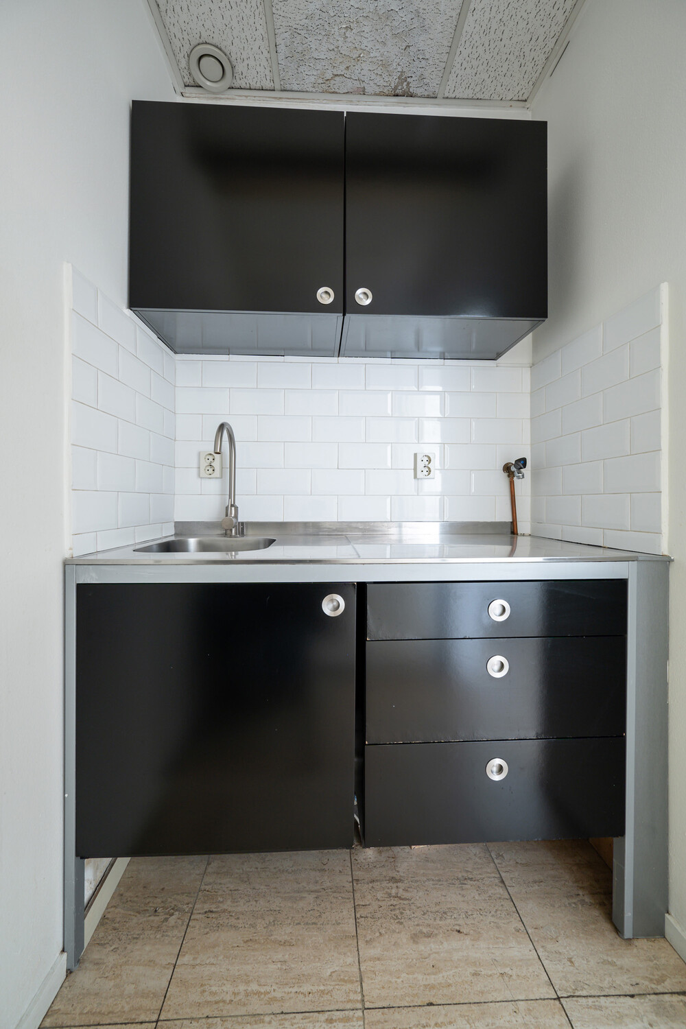 De pantry is voorzien van een spoelbak en boven- en onderkasten. Vanuit hier bereikt u de cv-ruimte en een tweede meterkast.