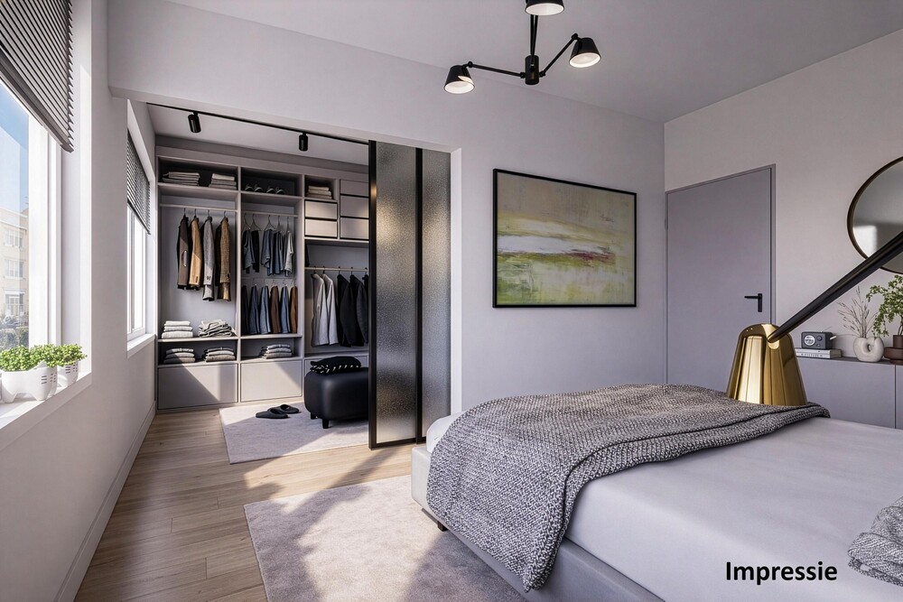 De royale slaapkamer aan de voorzijde biedt een prachtig uitzicht over de brede groenstrook. Vanuit deze kamer heeft u directe toegang tot de pantry.