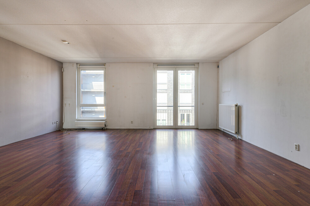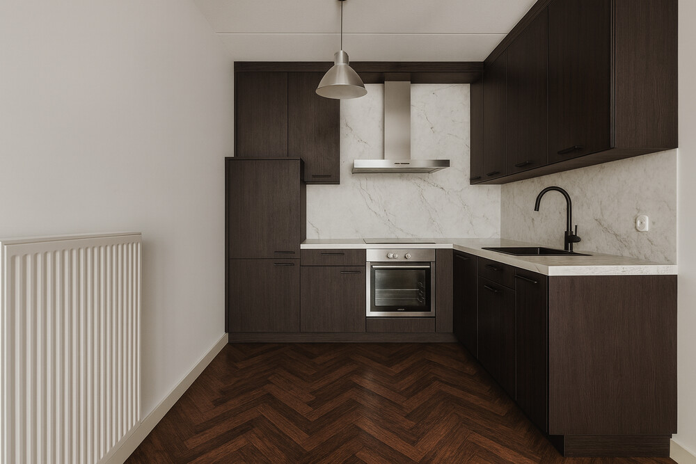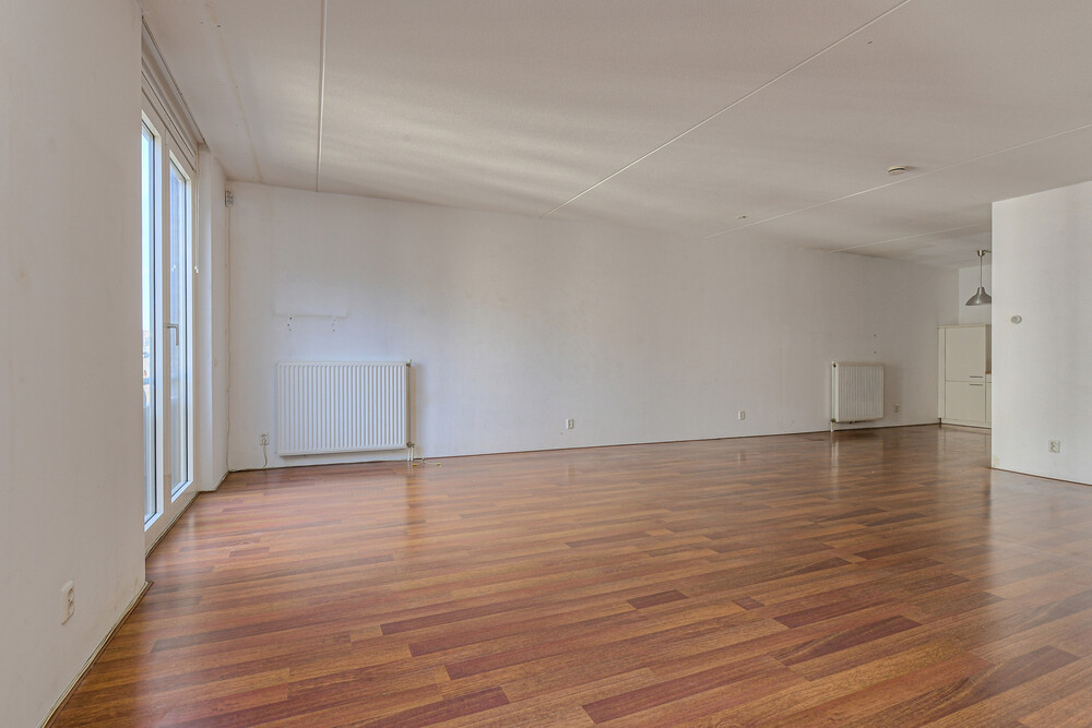 Grote, lichte woonkamer, eveneens grenzend aan de sfeervolle binnentuin. In de woonkamer treft u een Frans balkon.Keuken