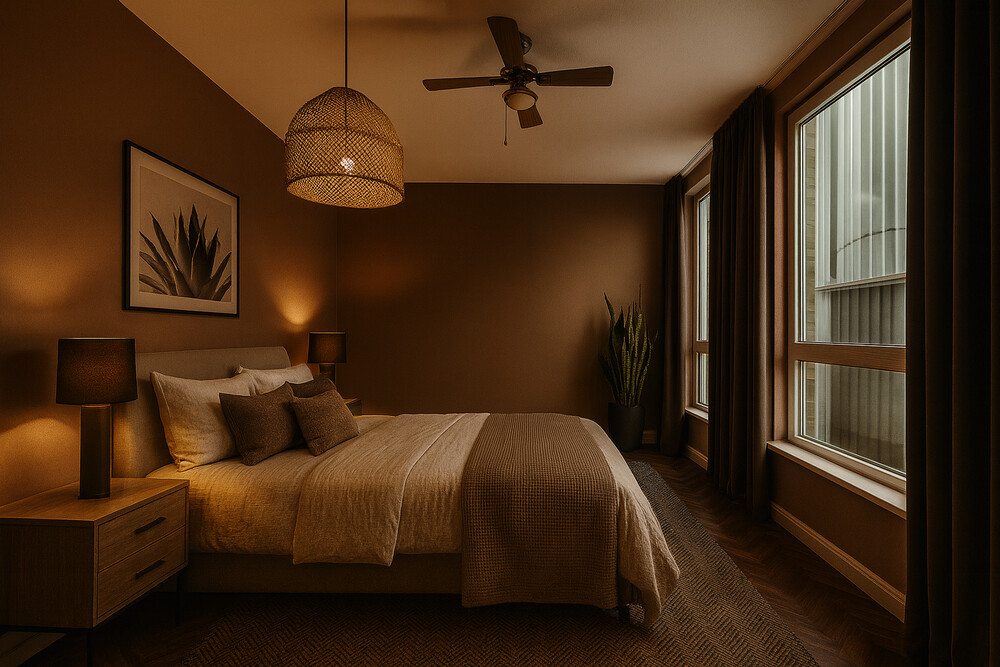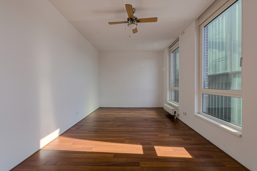 Slaapkamer aan de achterzijde (met zicht op de binnentuin) gelegen.Woonkamer