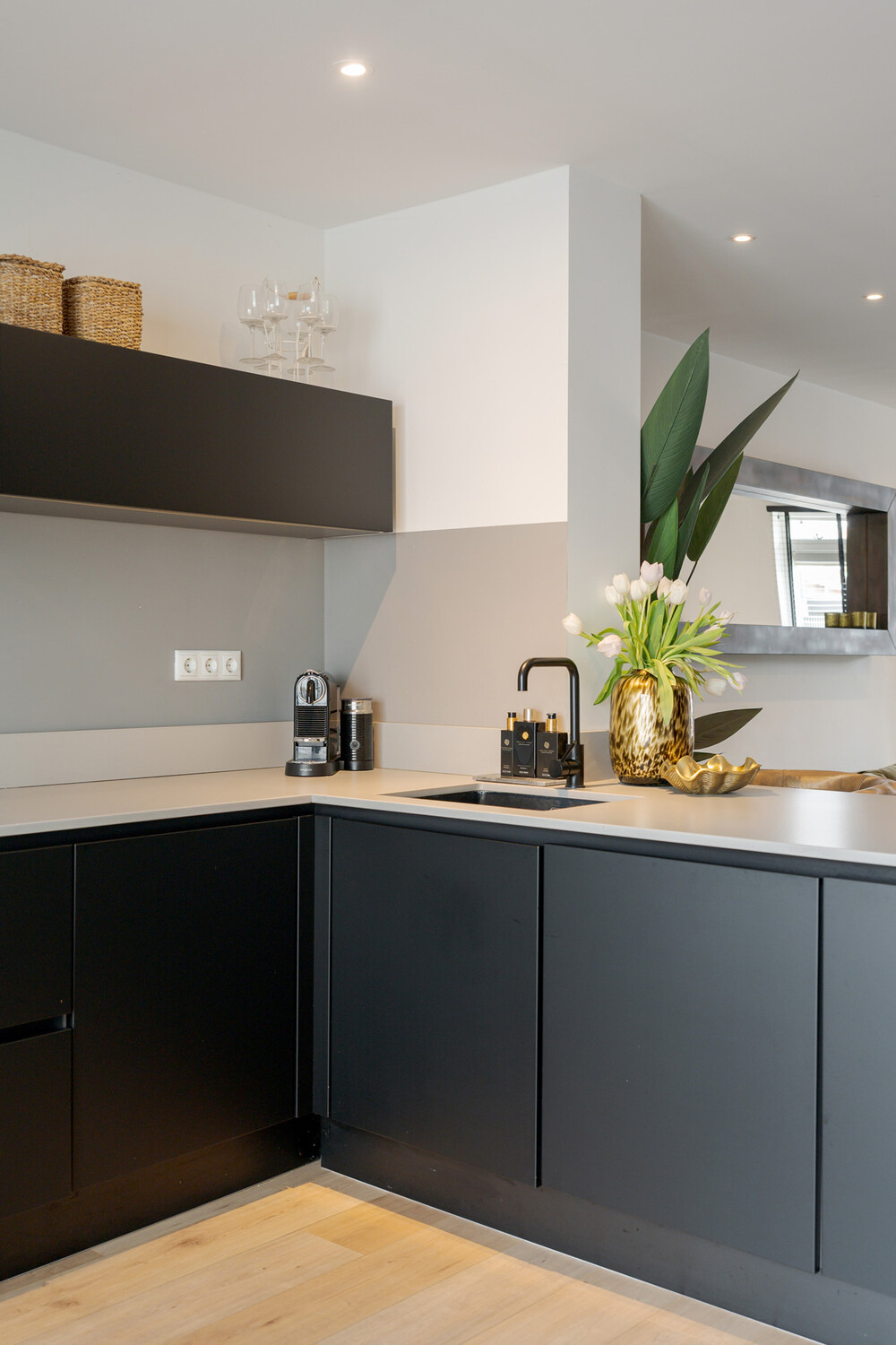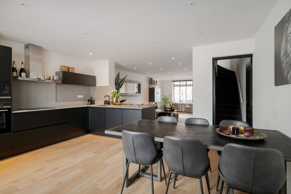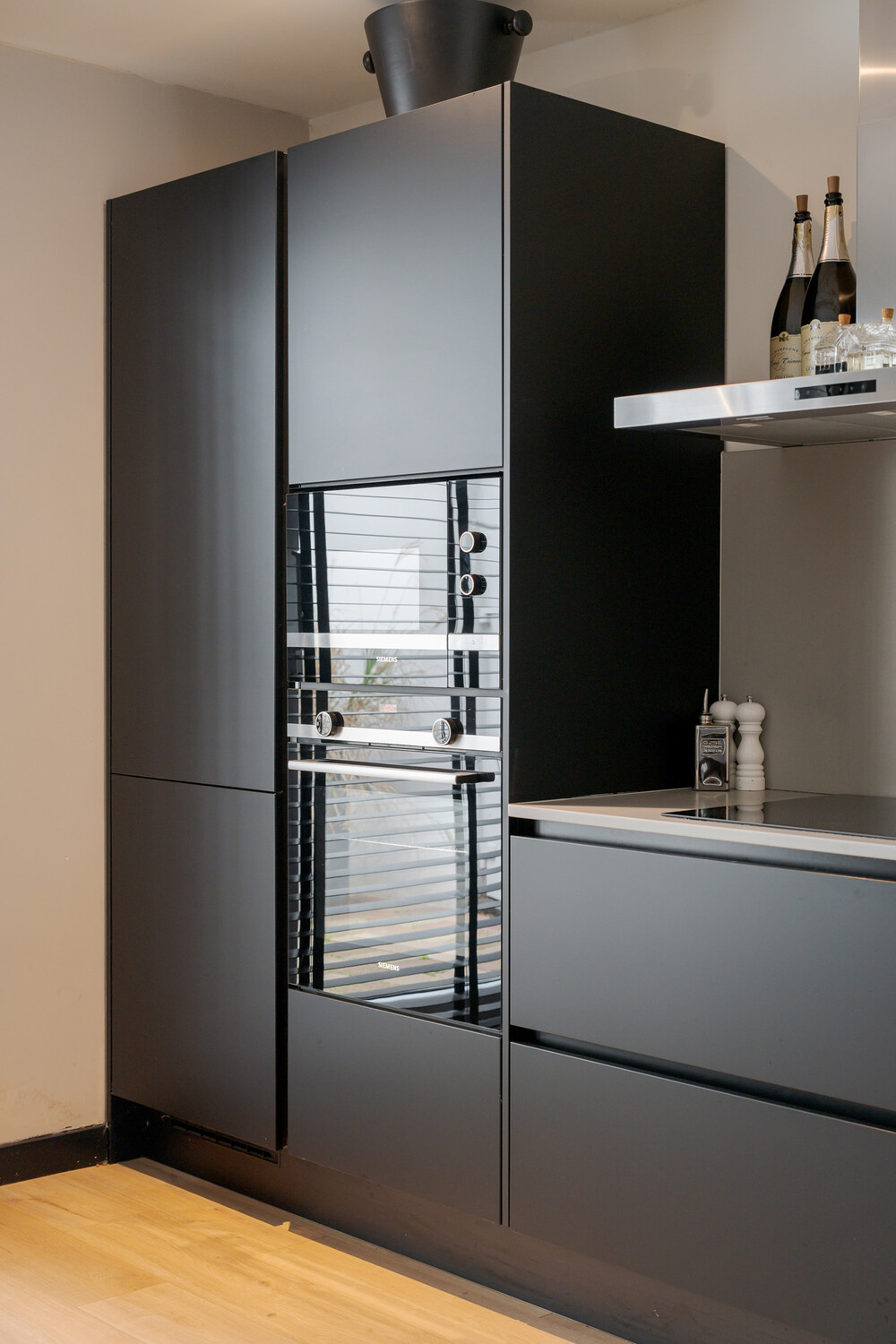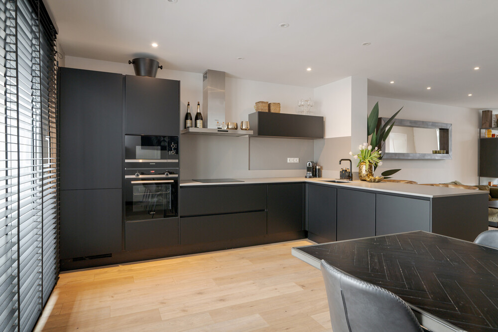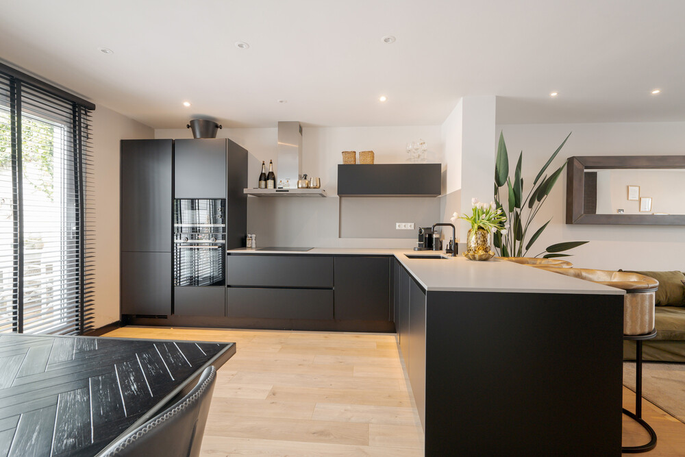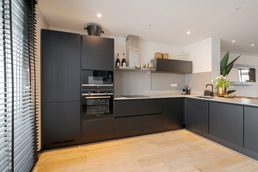 De keuken is voorzien van een 4-pits inductiekookplaat, afzuigkap, magnetron, oven, vaatwasser, koelkast en vriezer (allen Siemens) en handige onderkasten en bovenkasten.
