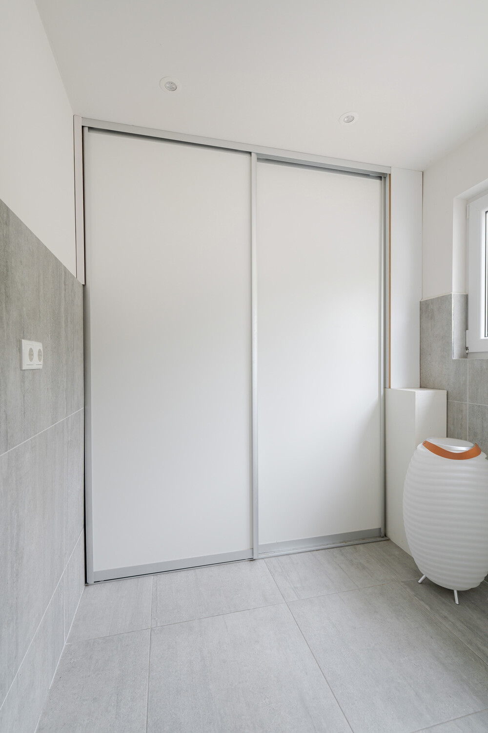 Handige maatwerkkast waarin de aansluitingen zijn gesitueerd ten behoeve van de wasmachine en droger. Tevens is hier de cv-ketel (Remeha 2019, in eigendom) geplaatst.De gehele begane grond is voorzien van vloerverwarming.