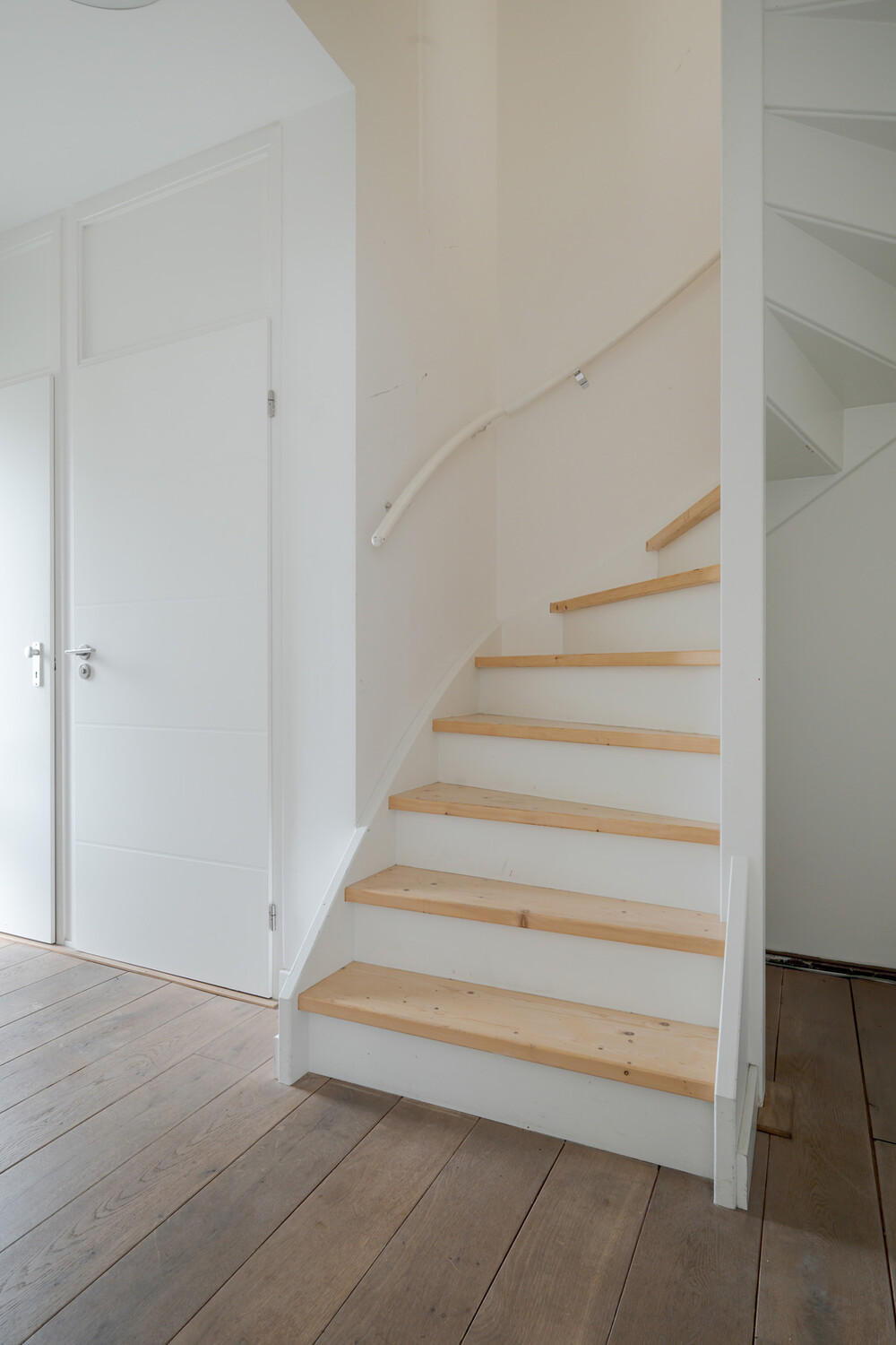 Ruime overloop met vaste trap naar tweede verdieping.Slaapkamer i
