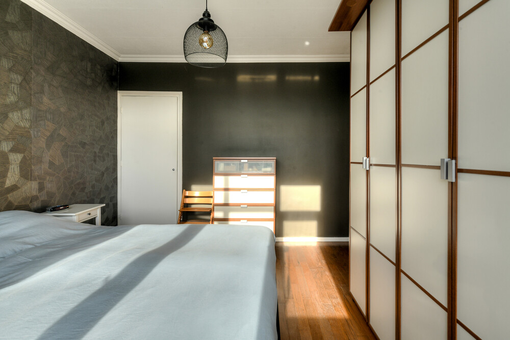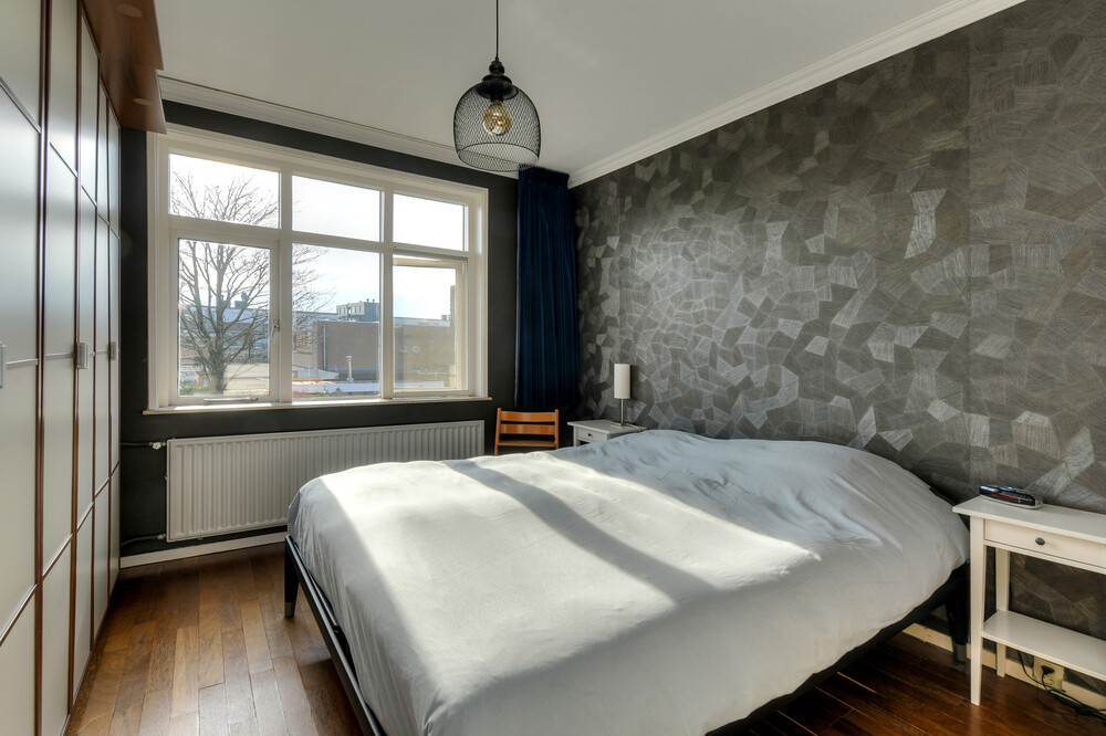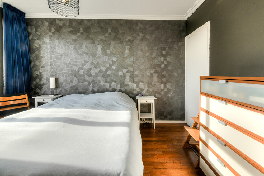 Grote slaapkamer aan de achterzijde met houten vloer en muurkast.Slaapkamer iii