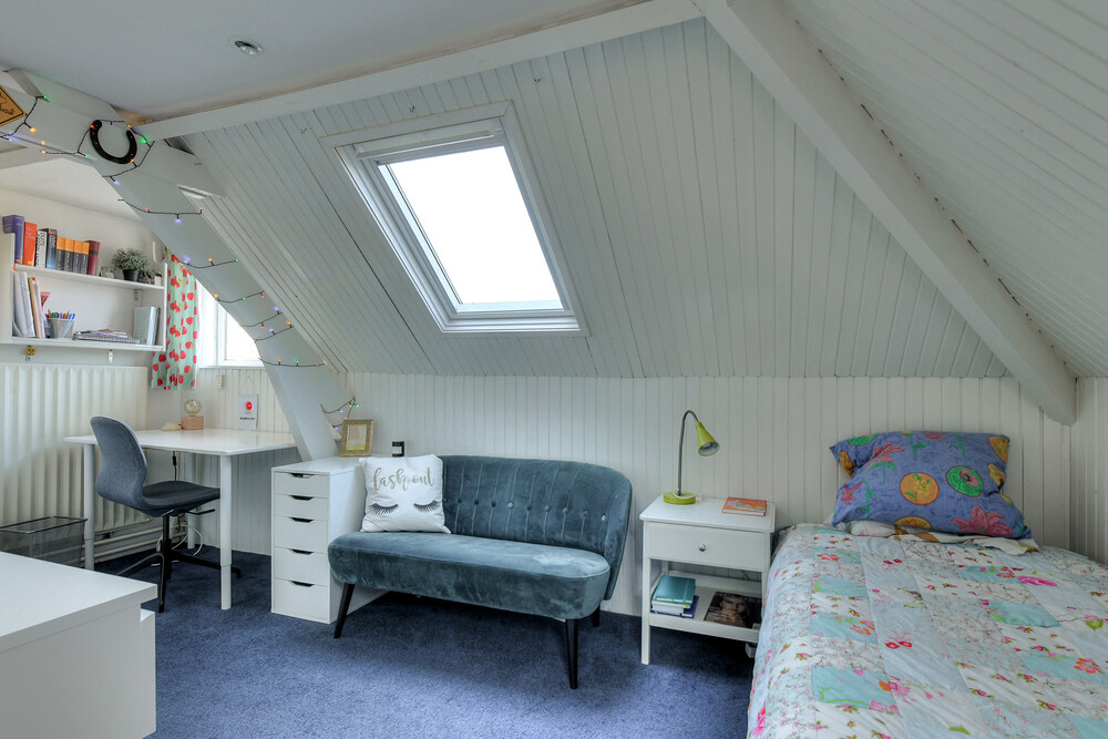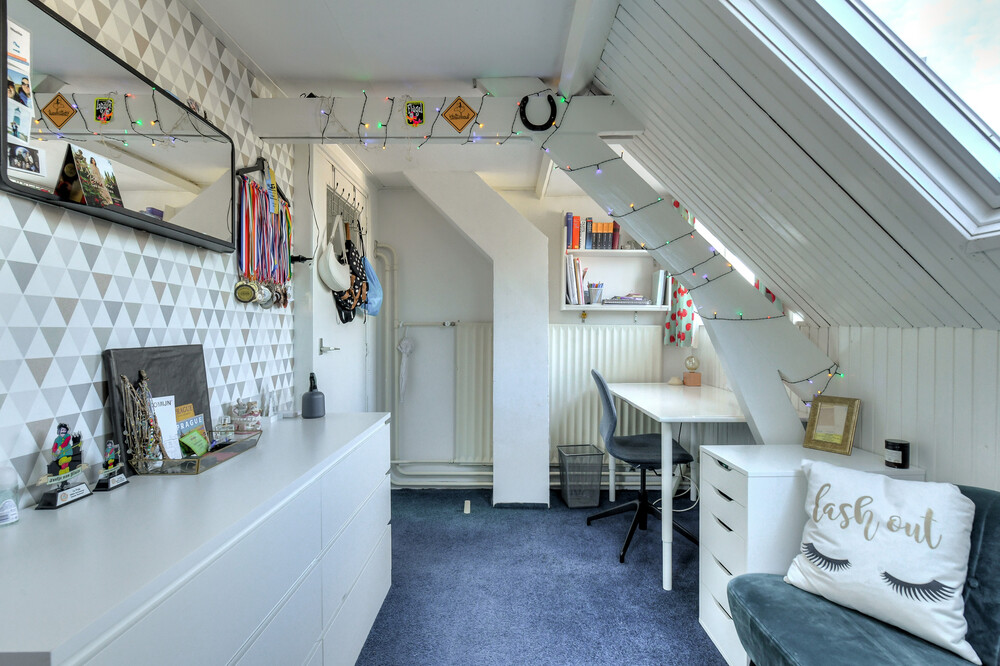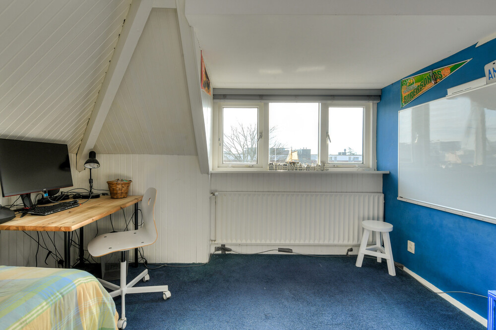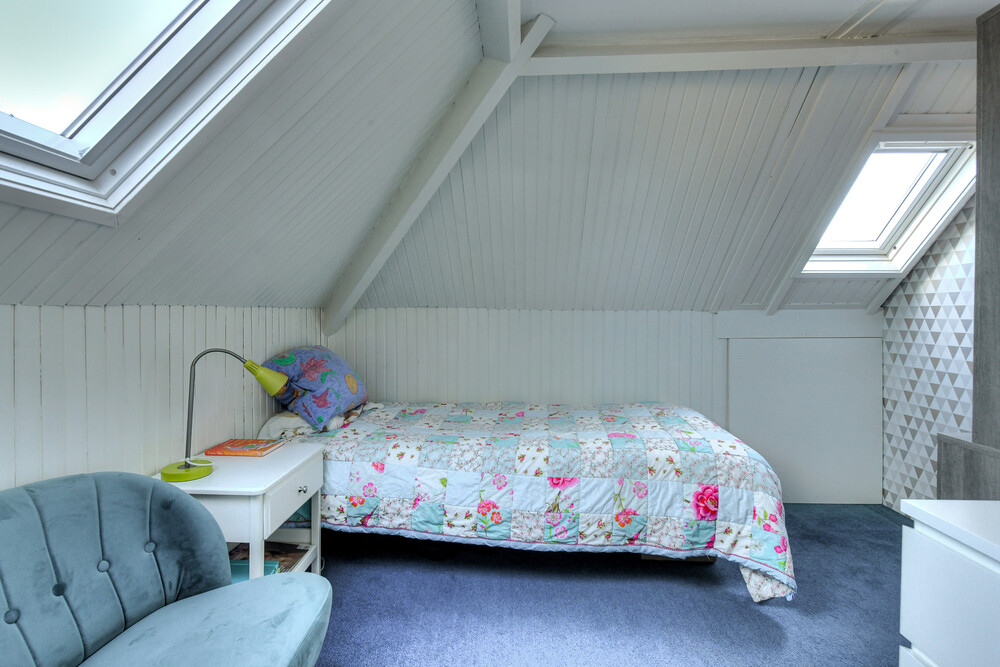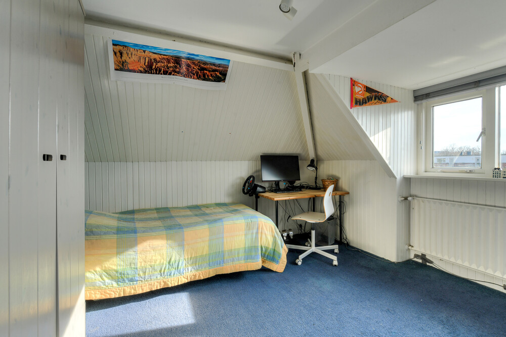 Slaapkamer aan de achterzijde met dakkapel.Bergzolder