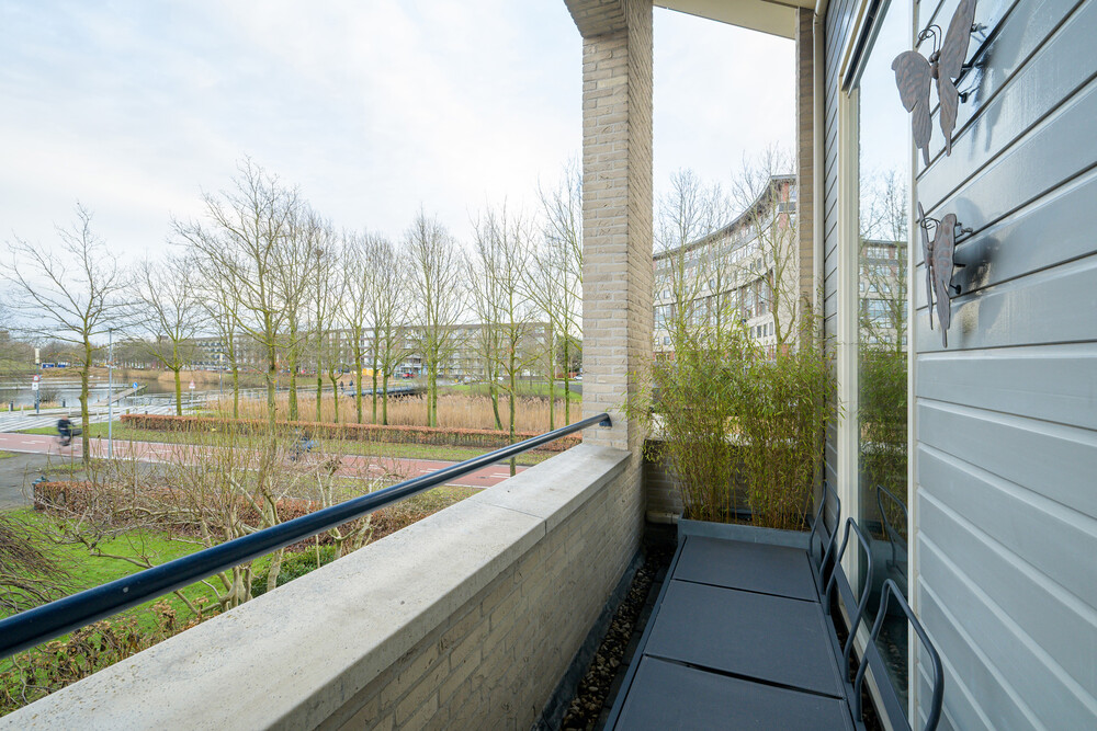 Slaapkamer aan de voorzijde van de woning gesitueerd. Openslaande deuren bieden toegang tot de loggia waar u heerlijk van de ochtendzon en het prachtige uitzicht over de waterpartij kunt genieten.Slaapkamer ii