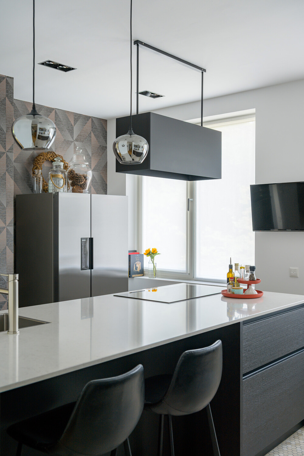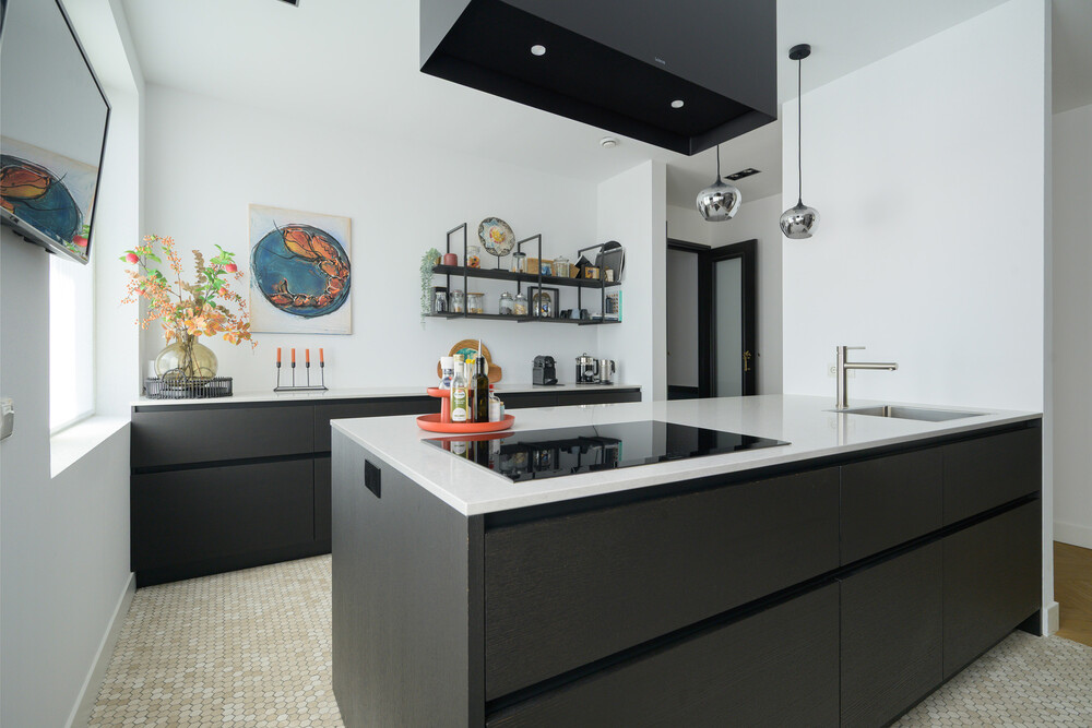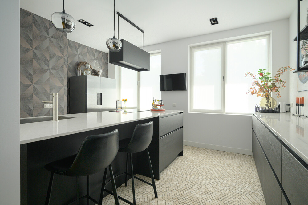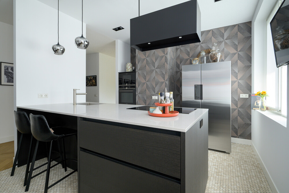 De half-open keuken grenst aan de woonkamer. De luxe inrichting bestaat uit een eiland met composiet blad met rvs-spoelbak, een inductiekookplaat, een design-afzuigkap, vaatwasmachine en diverse laden; aan de andere zijde treft u ook lades, alsmede een eetbar.Slaapkamer i