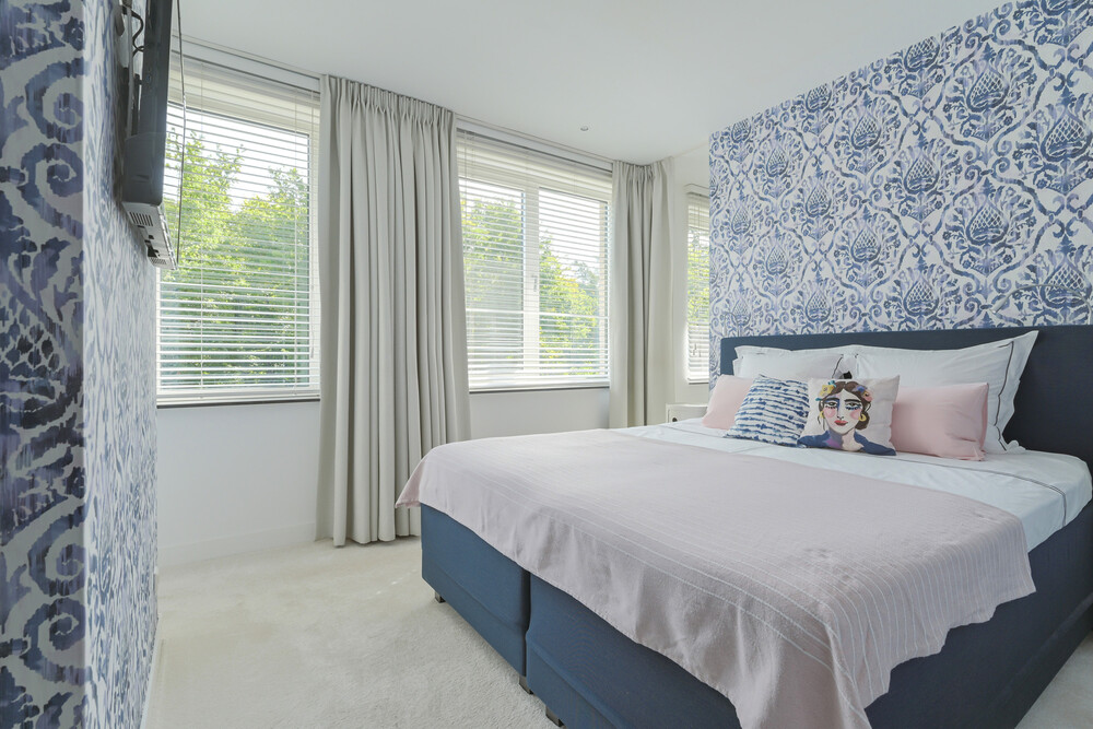 Hoofdslaapkamer met aangrenzende garderobekamer en badkamer. Ook vanuit de slaapkamer heeft u prachtig zicht op het bos.Slaapkamer ii