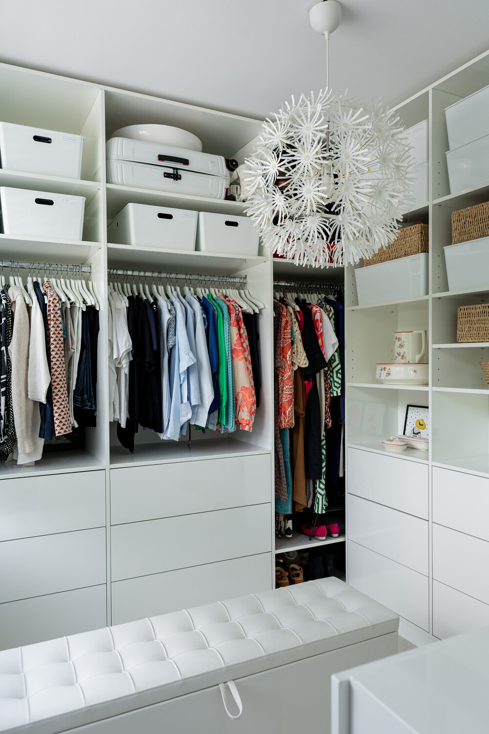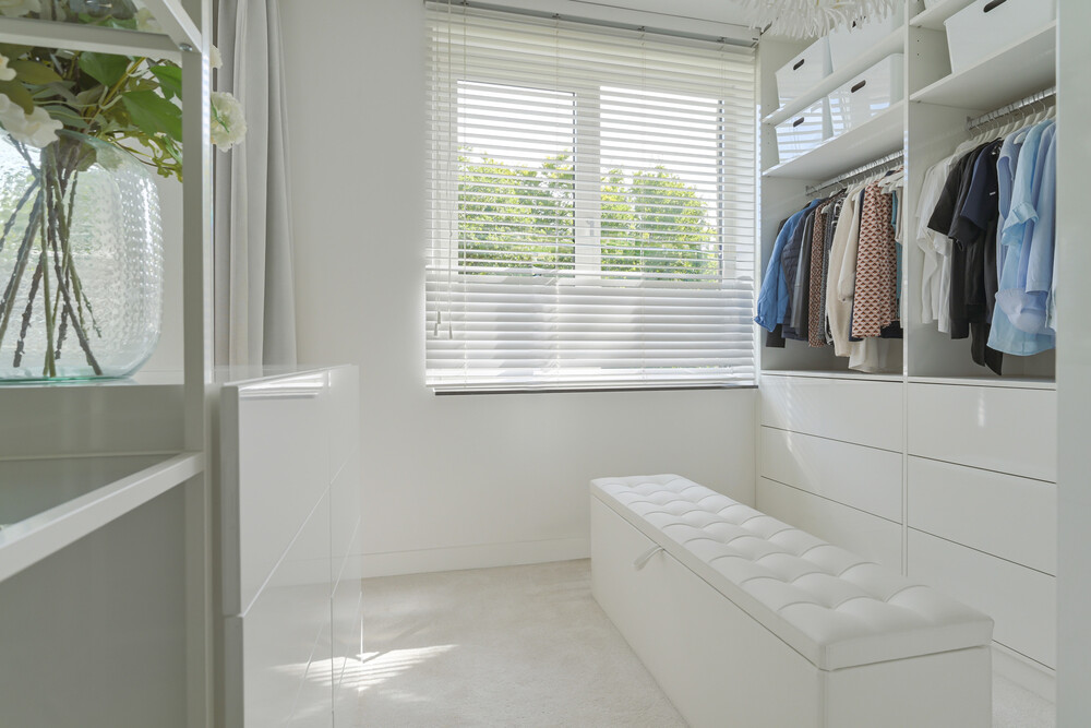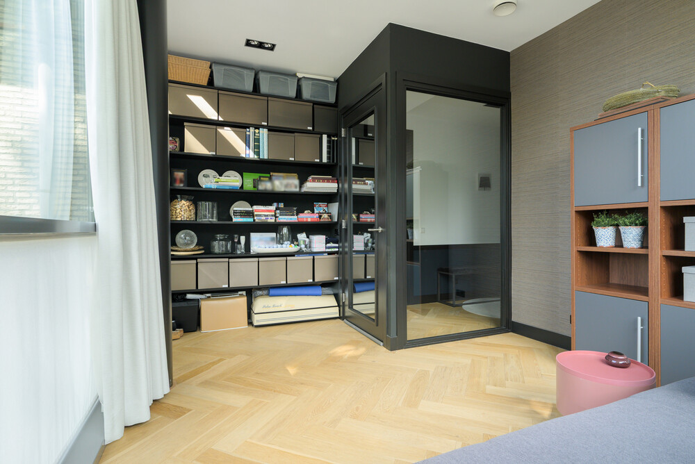 Slaapkamer, grenzend aan de hoofdslaapkamer. Deze kamer is nu in gebruik als garderobekamer met wandkast.Badkamer i