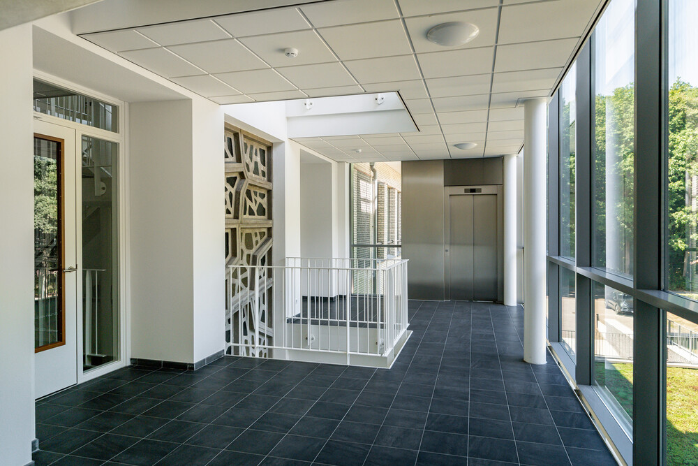 U betreedt het complex via een zeer ruime, lichte entree, waar u ook onder andere het bellentableau, de brievenbussen en de lift treft.Hal/entree