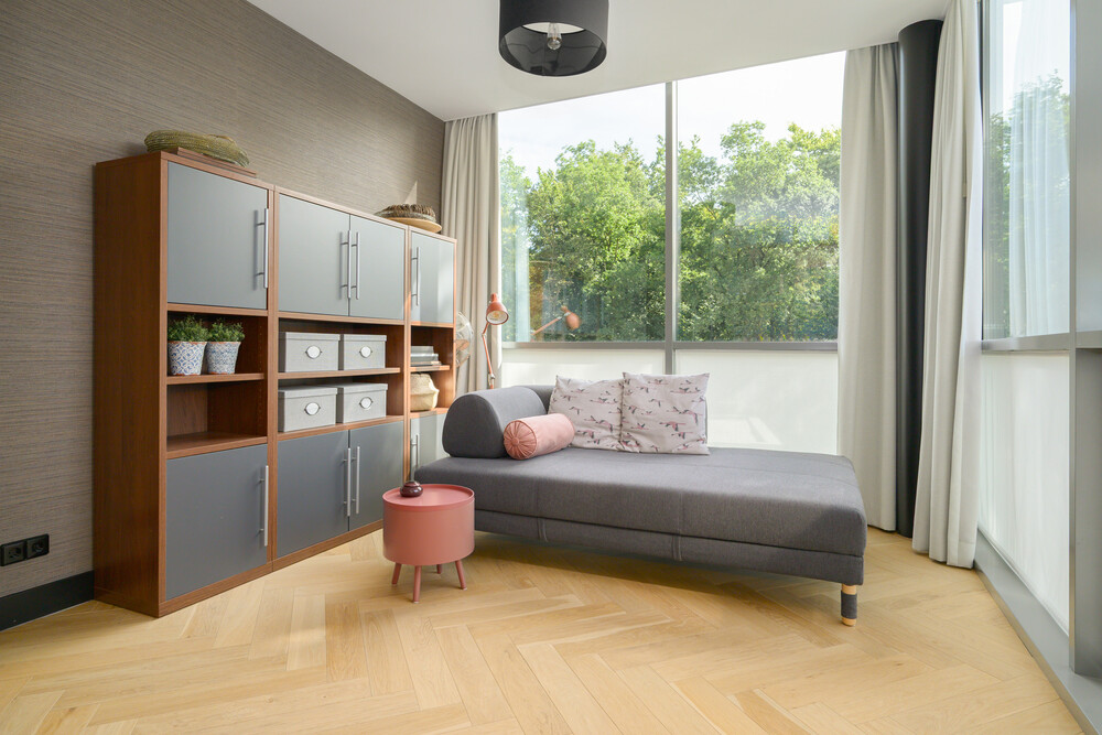 • Het appartement is vrijwel geheel uitgevoerd met een prachtige parketvloer in visgraatpatroon.