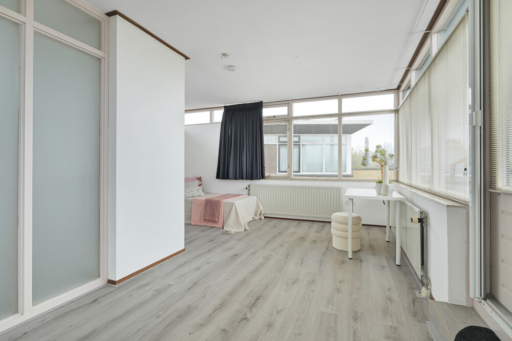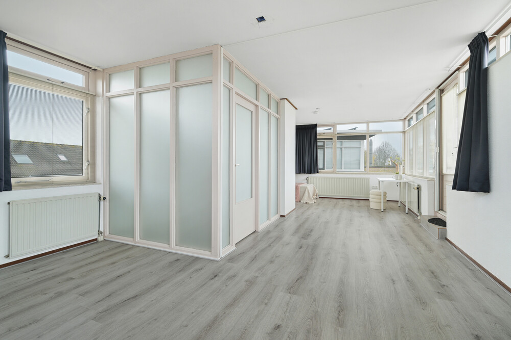 Afsluitbaar portaal met toegang tot grote open U-vormige ruimte die eventueel te verdelen is in 2 of 3 slaapkamers.In deze ruimte bevindt zich een kast met de CV-ketel.
