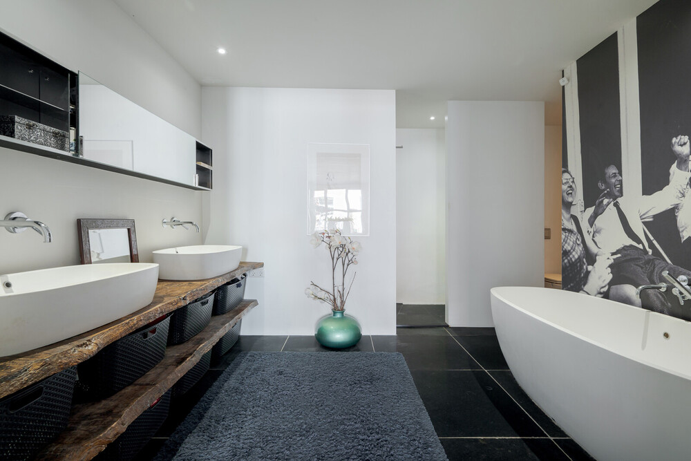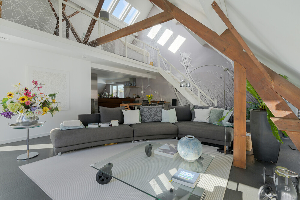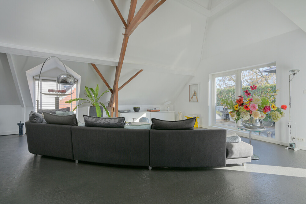 Deze unieke woning is ooit als boven- en benedenwoning gebouwd en is samengevoegd tot het bijzondere object dat het nu is.